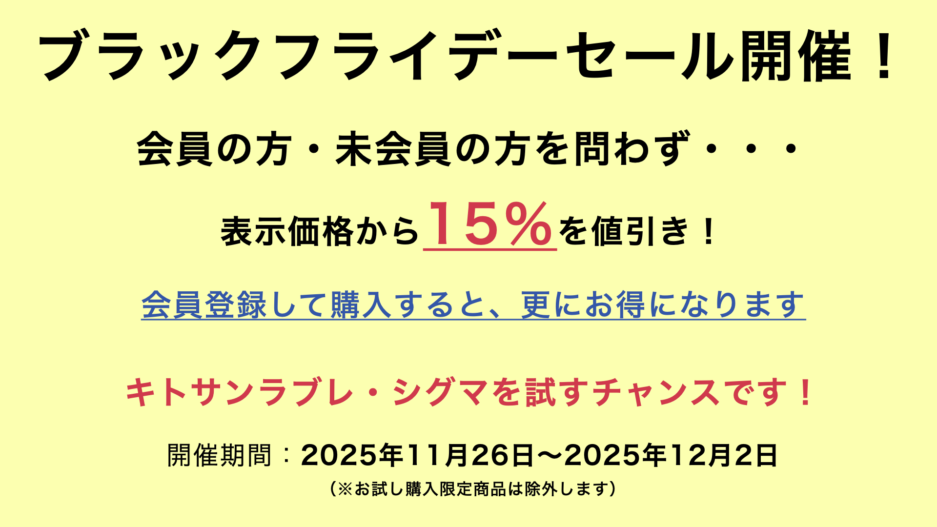 - 2025.11.26ブラックフライデー15%値引きセール(お試し購入限定商品は除外)